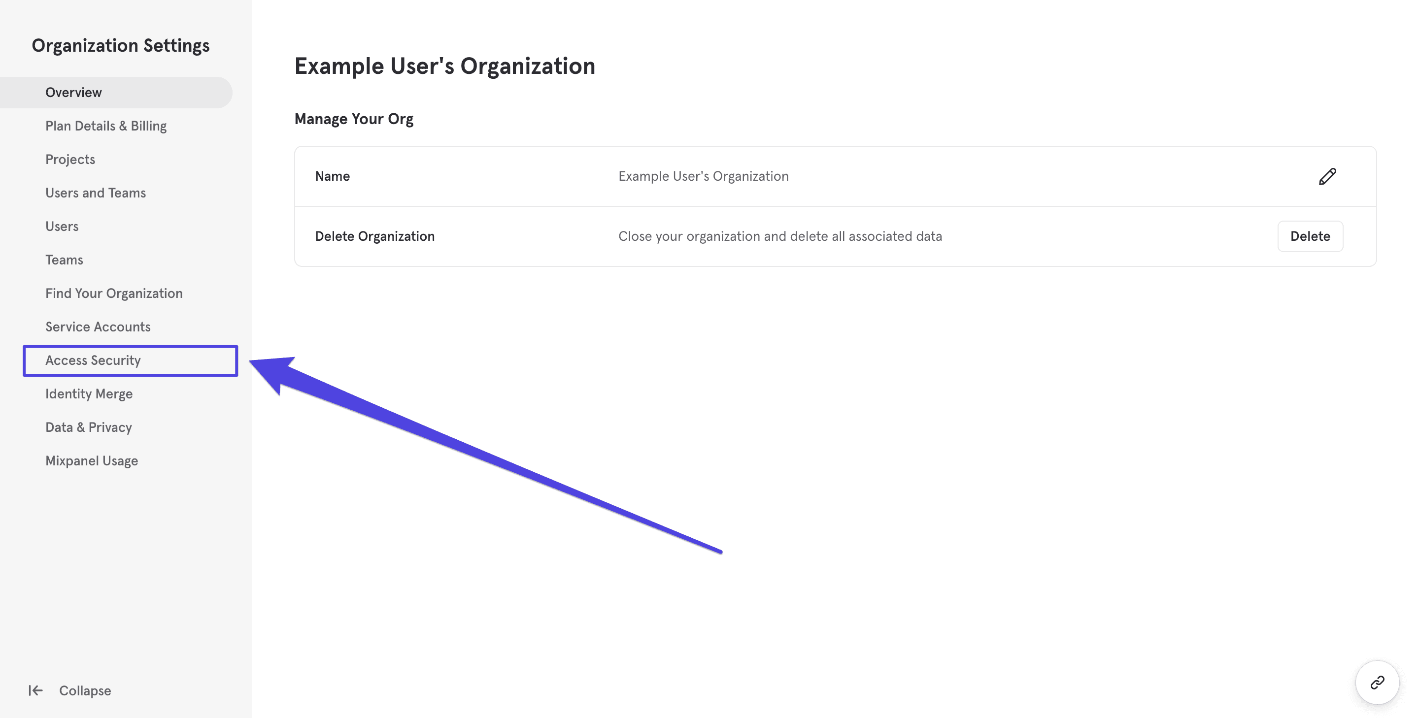 1. Navigate to the Access Security section within your “Organization Settings”.